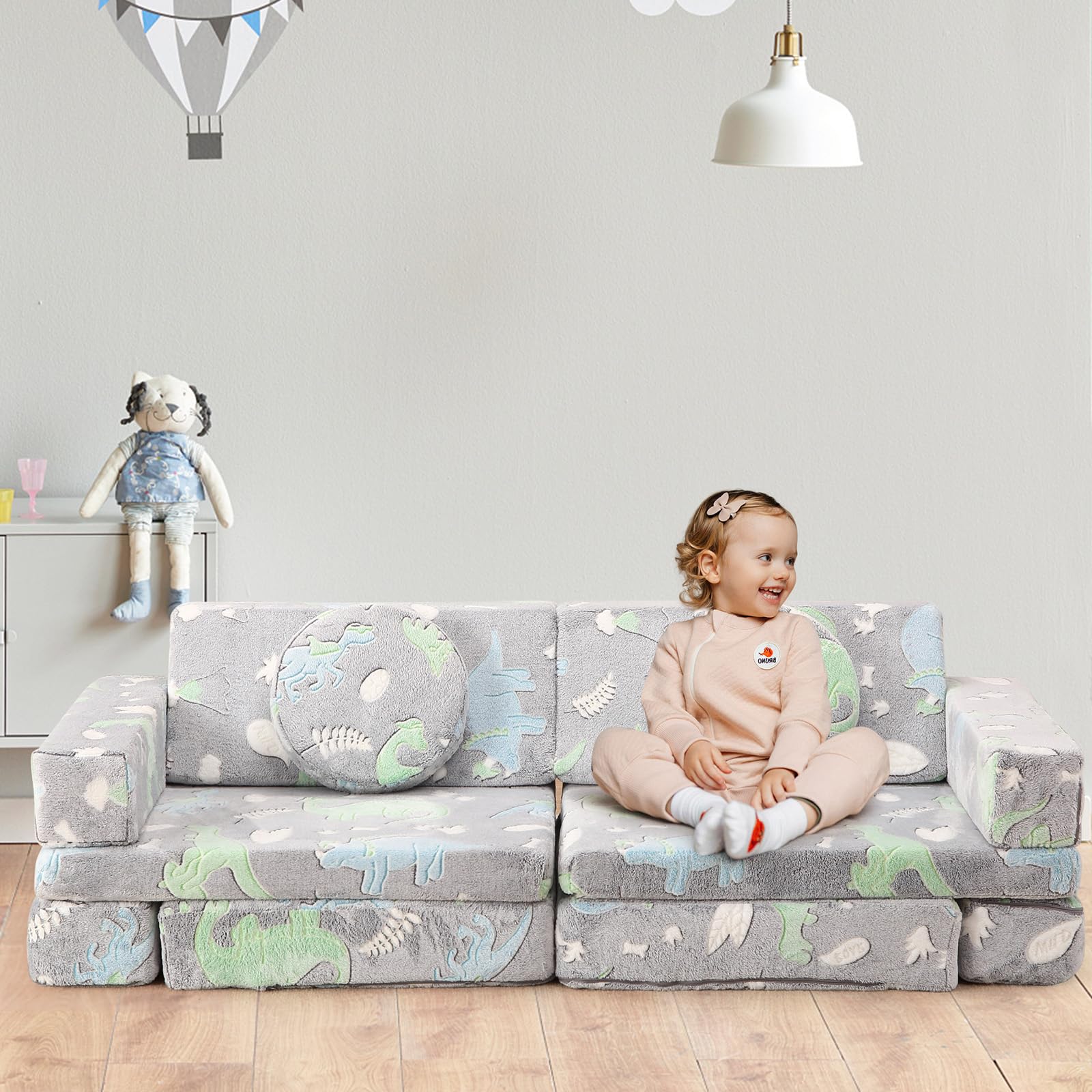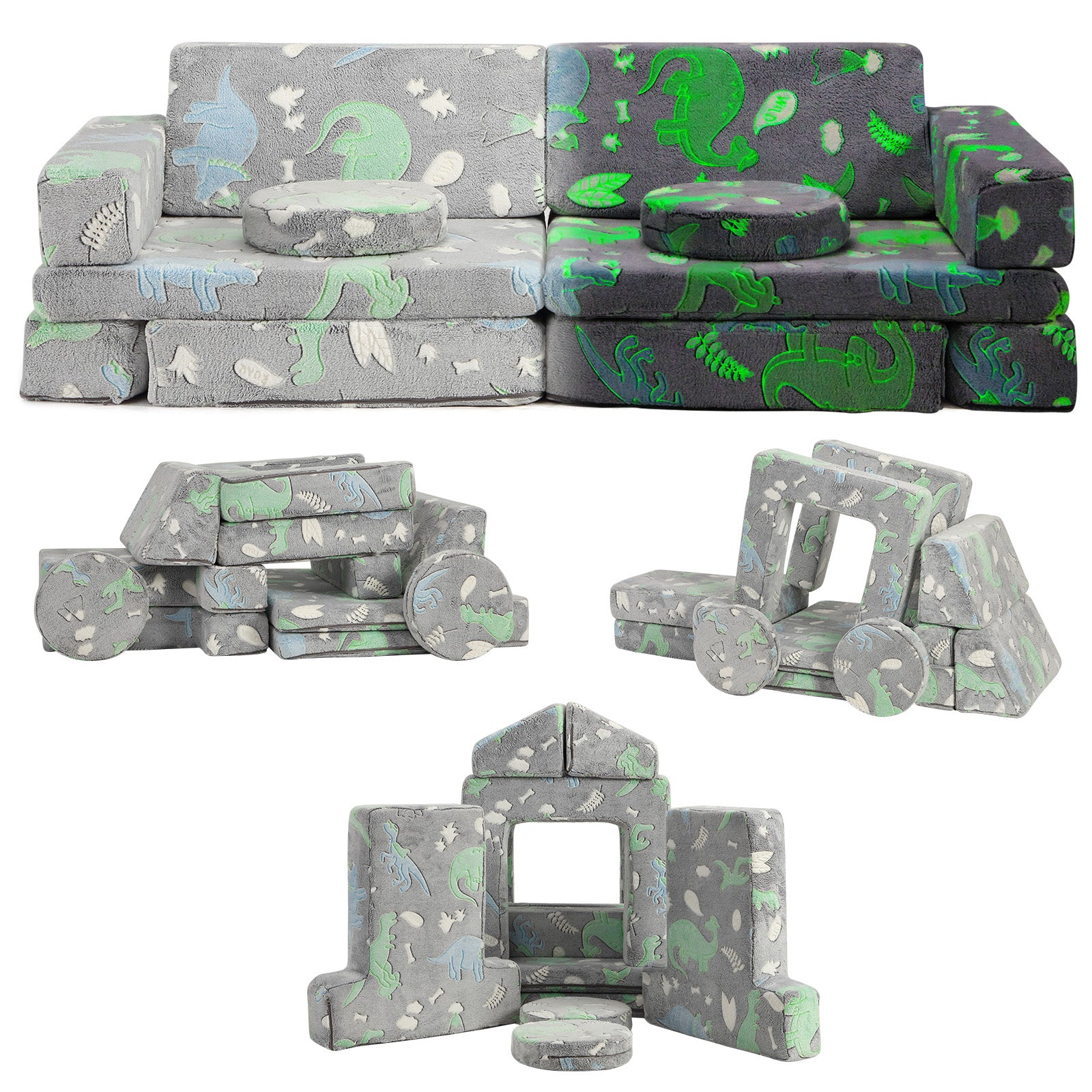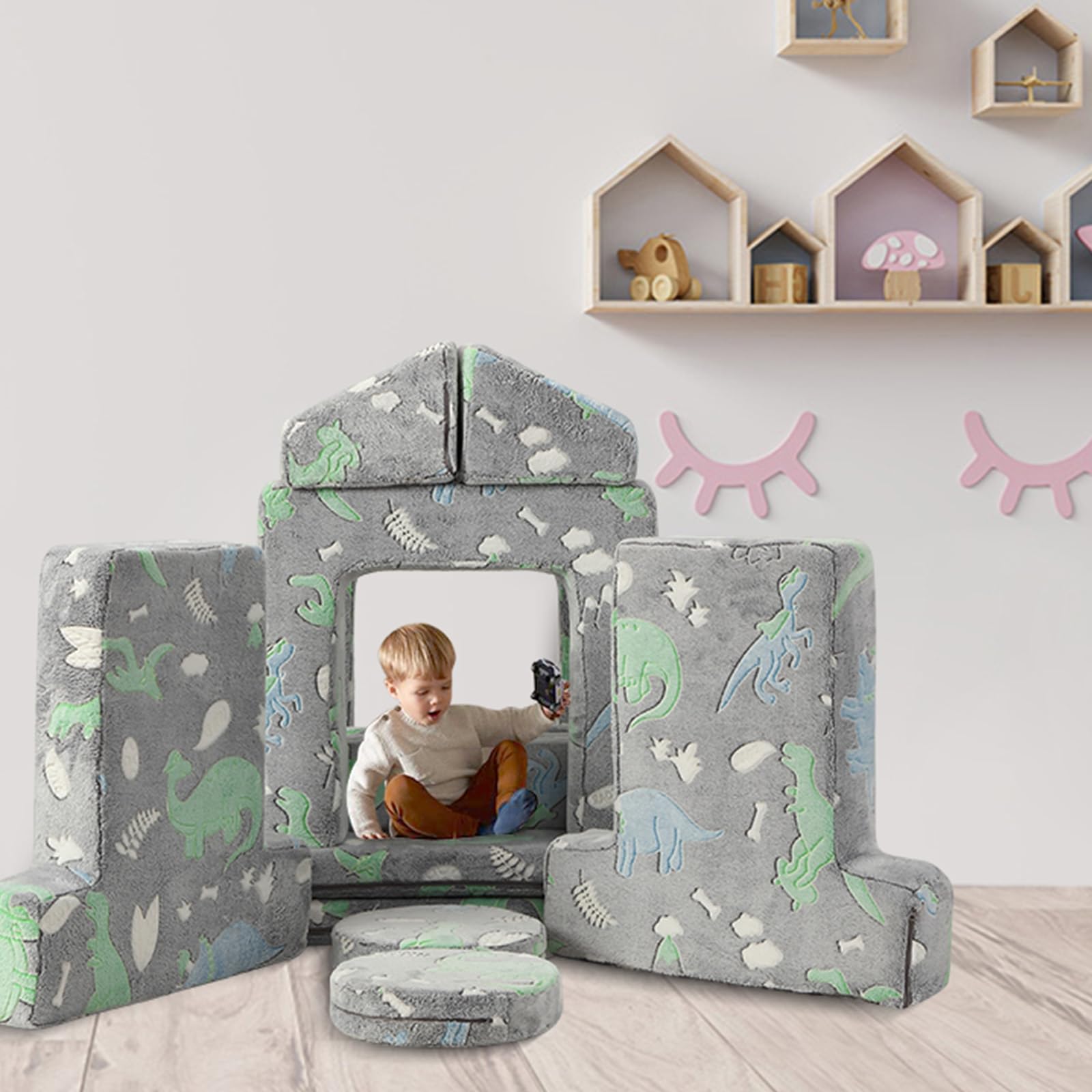 With its glow-in-the-dark dinosaur theme, convertible design, and durable construction, this set combines fun with functionality. The velvet upholstery ensures comfort while the modular pieces provide endless configuration possibilities.