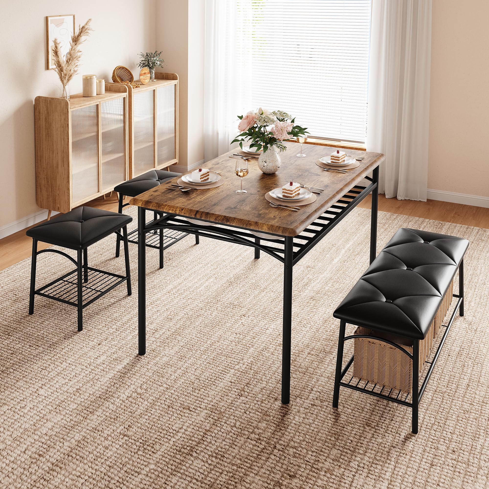 With its rustic brown finish, comfortable PU leather cushions, and sturdy construction, this set combines style with practicality. The space-saving design makes it perfect for apartments, small dining rooms, or breakfast nooks.