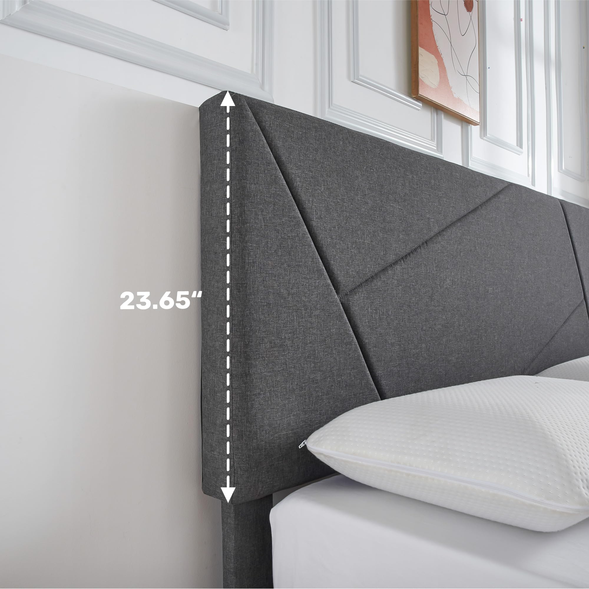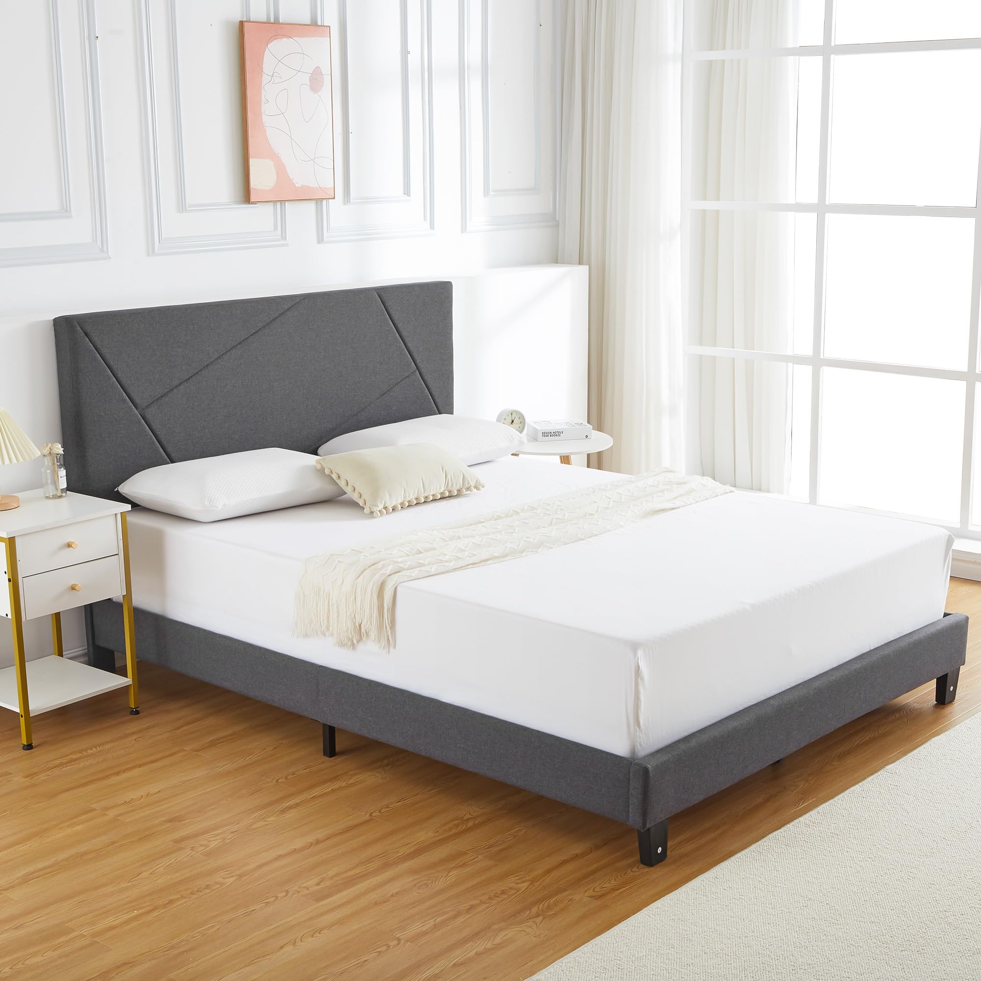 With its sturdy construction, sleek design, and comfortable upholstery, this bed frame combines aesthetics with practicality. The heavy-duty platform ensures stability and supports all mattress types evenly.