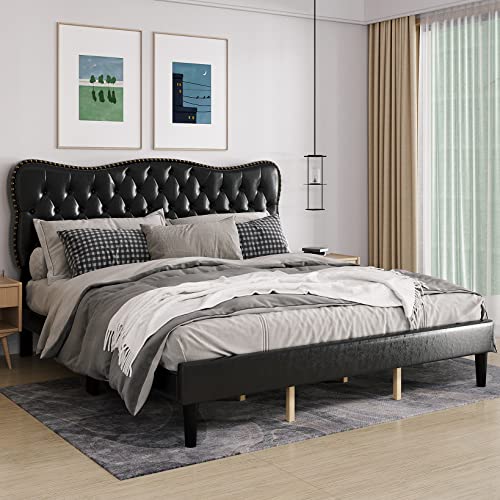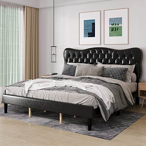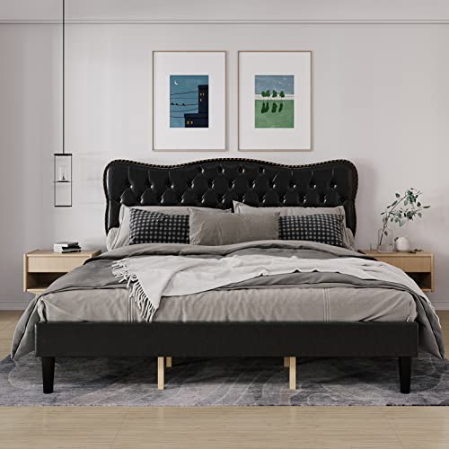 CuisinSmart Queen Size Faux Leather Upholstered Platform Bed Frame: Where Style Meets Comfort