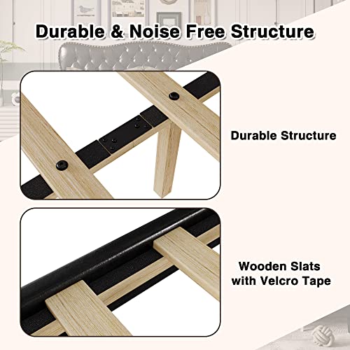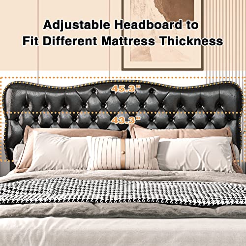 Experience luxury and comfort with the CuisinSmart Queen Size Faux Leather Upholstered Platform Bed Frame